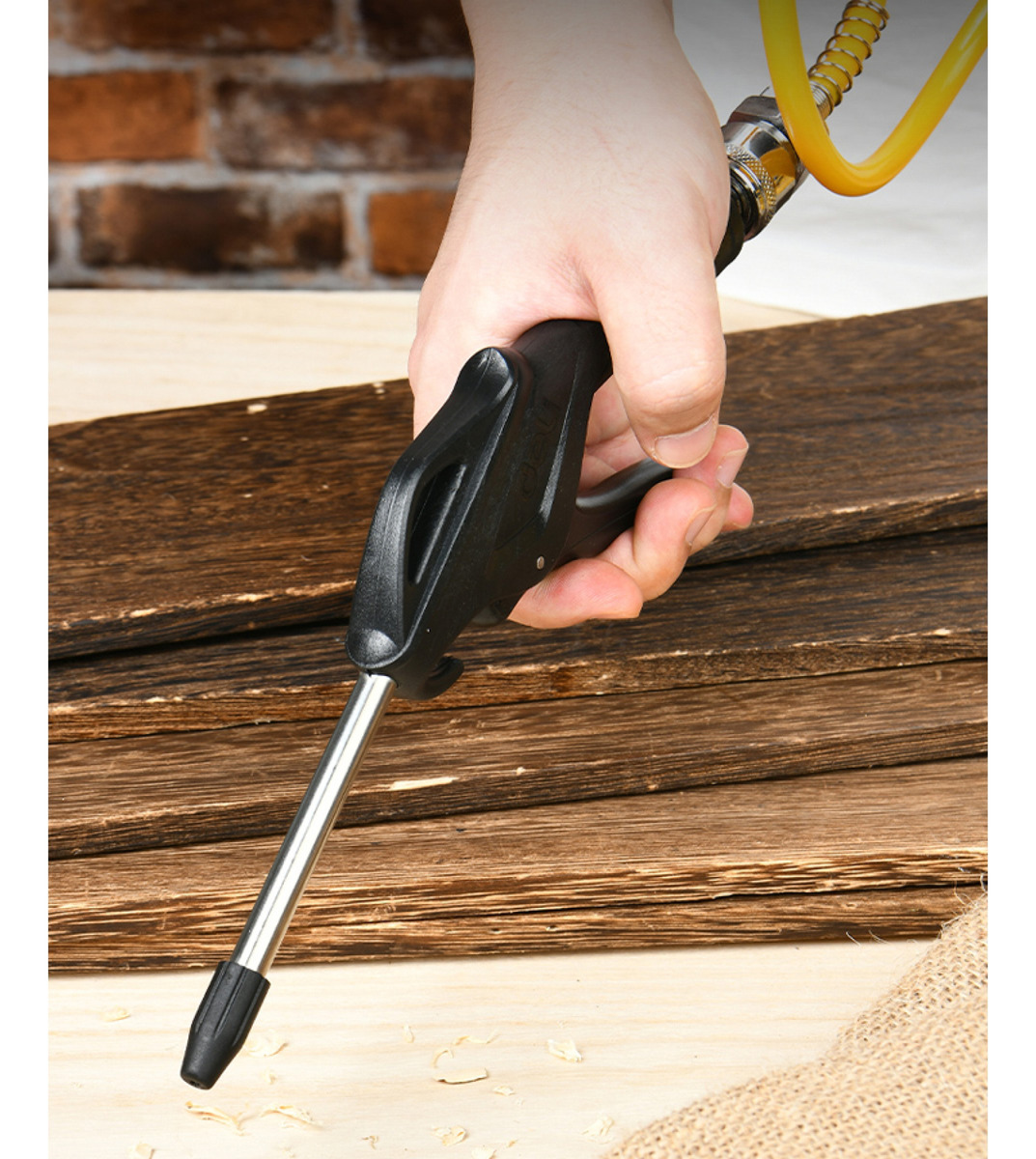 La pistola para compresor de aire Deli DL-XQ11 es la herramienta ideal para quienes buscan eficiencia y versatilidad en sus proyectos. Con un diseño portátil, esta pistola facilita su uso en espacios reducidos y permite su transporte sin complicaciones.