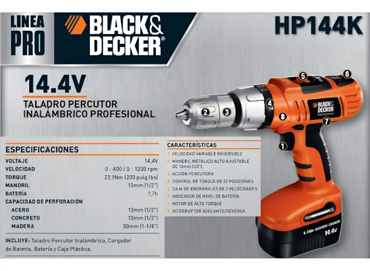 Taladro A Bateria C/ Maleta 18v, 1/2 Black And Decker 1.7ah